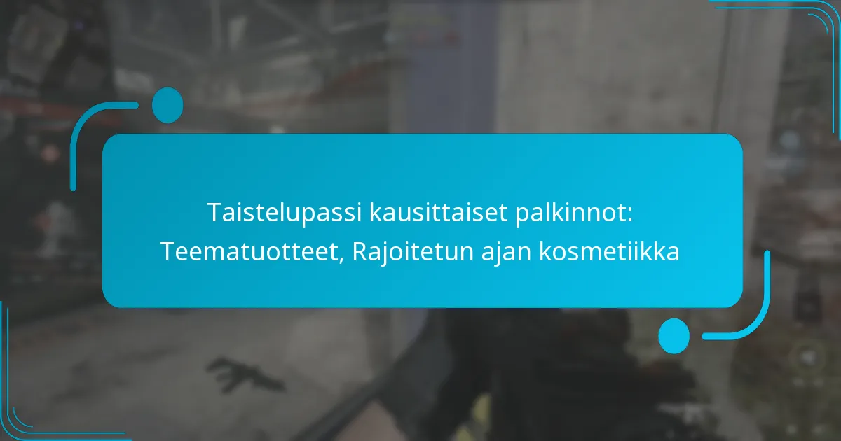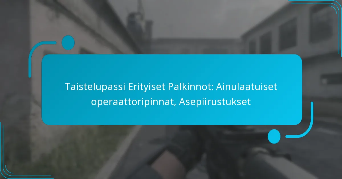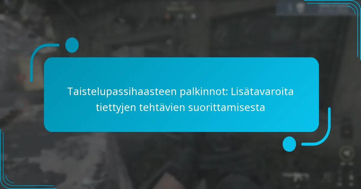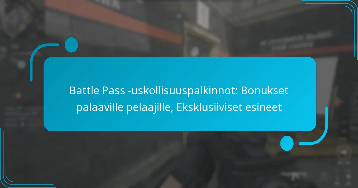 Battle Pass -palkinnot ovat eksklusiivisia esineitä ja etuja, joita pelaajat voivat ansaita edetessään suosikkipeleissään kausittaisen battle passin kautta. Suorittamalla tiettyjä tehtäviä ja ansaitsemalla kokemuspisteitä pelaajat avaa joukon palkintoja, mukaan lukien ainutlaatuisia skinejä, pelin sisäistä valuuttaa ja erityisiä keräilyesineitä, jotka parantavat heidän pelikokemustaan.